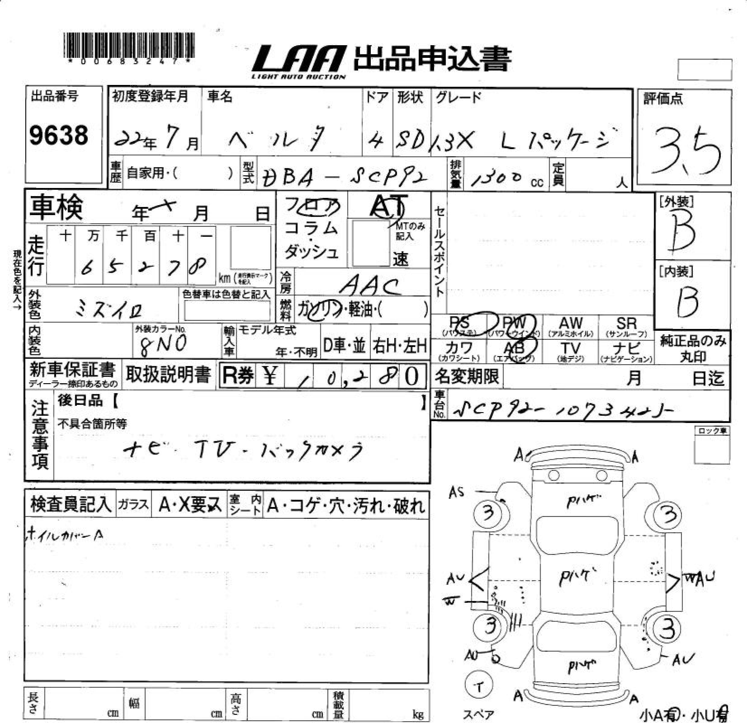 Все аукционы TOYOTA BELTA