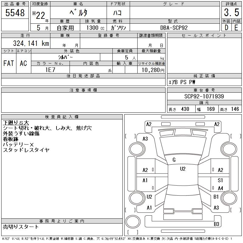 TOYOTA BELTA - лот 5548