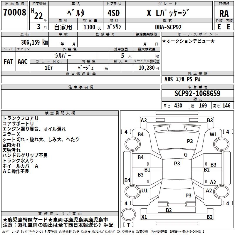 TOYOTA BELTA X L PACKAGE - лот 70008