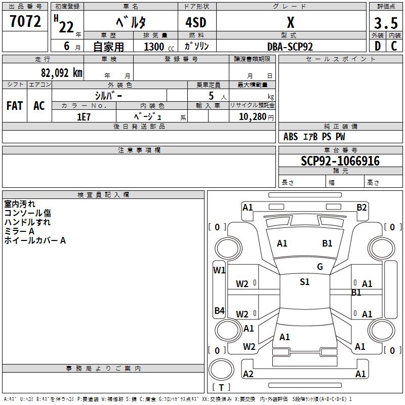 TOYOTA BELTA X - лот 7072
