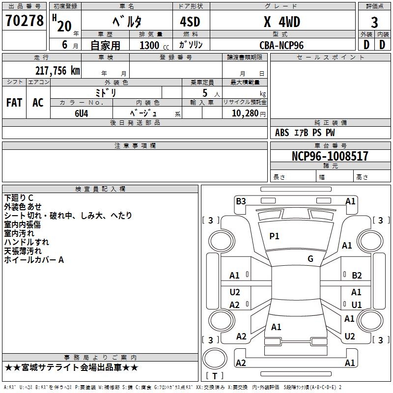 TOYOTA BELTA X 4WD - лот 70278