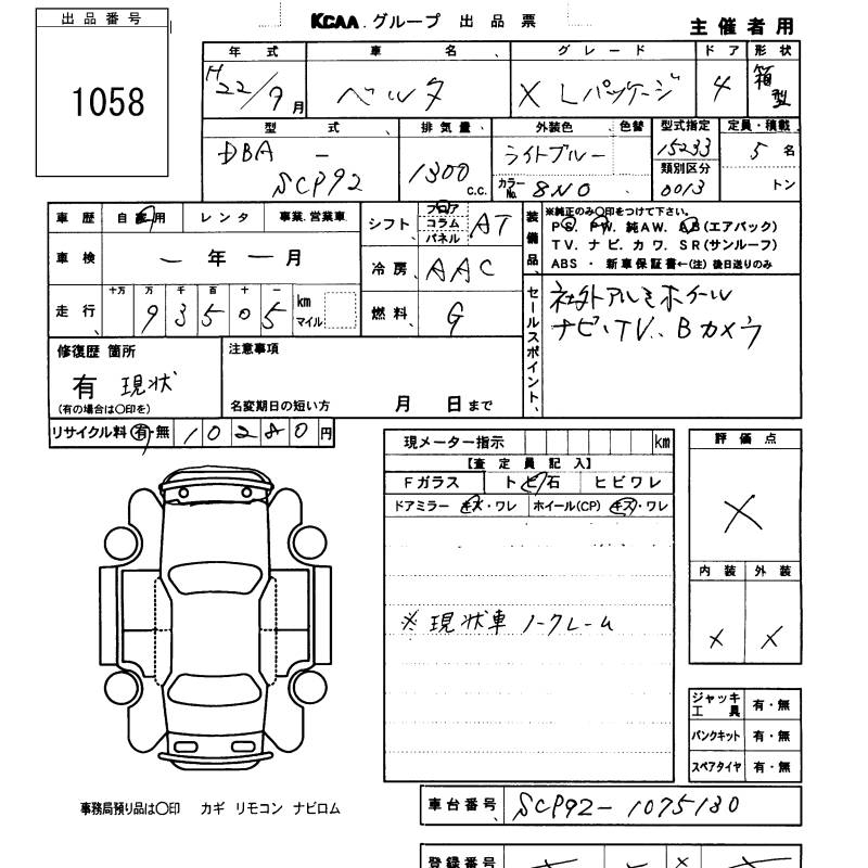 TOYOTA BELTA X L PACKAGE - лот 1058