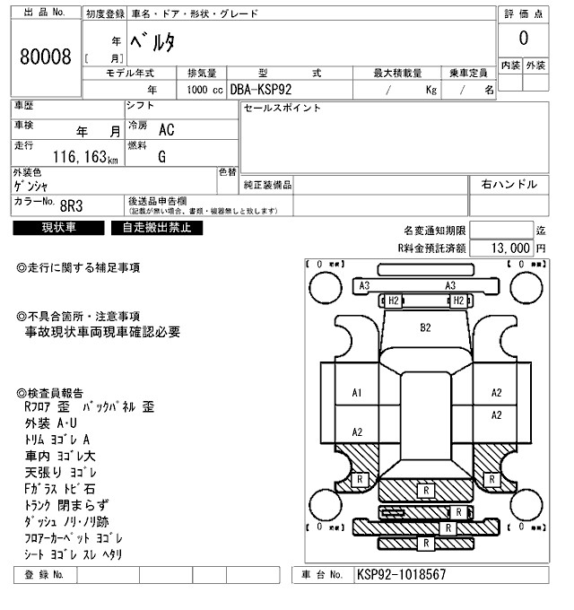TOYOTA BELTA - лот 80008