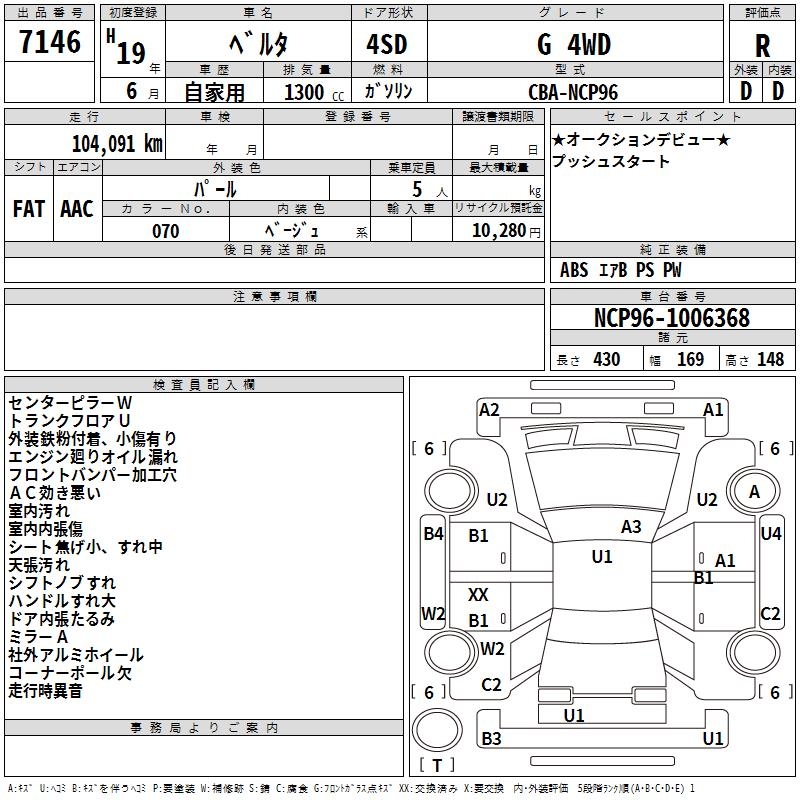 TOYOTA BELTA G 4WD - лот 7146