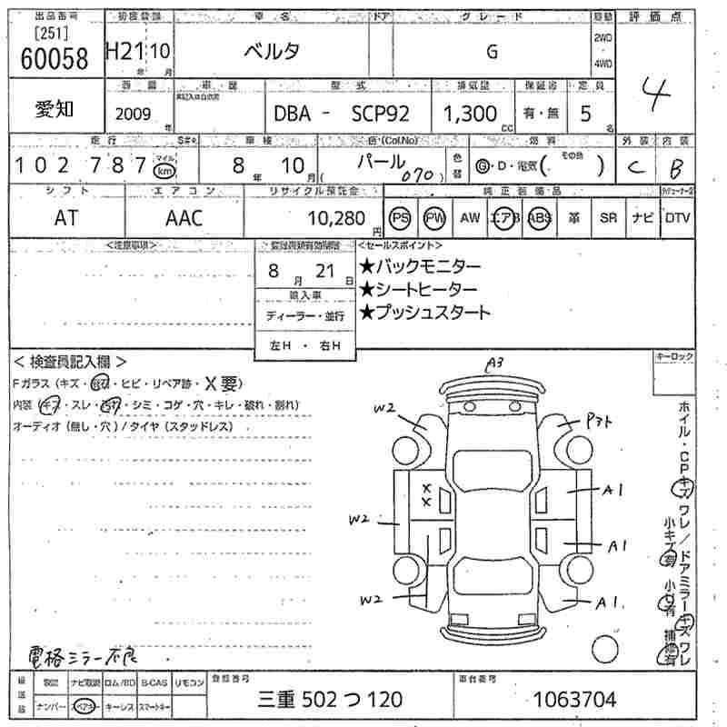 TOYOTA BELTA G - лот 60058
