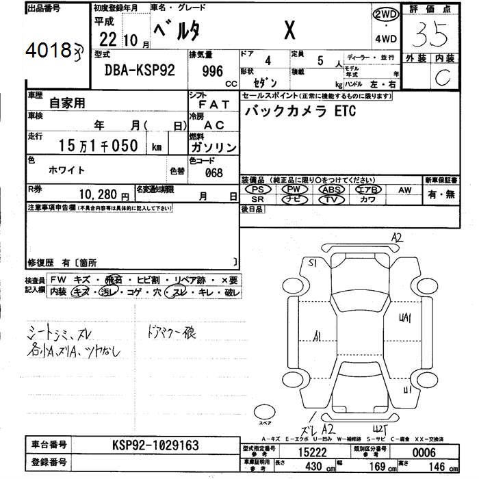 TOYOTA BELTA X - лот 4018
