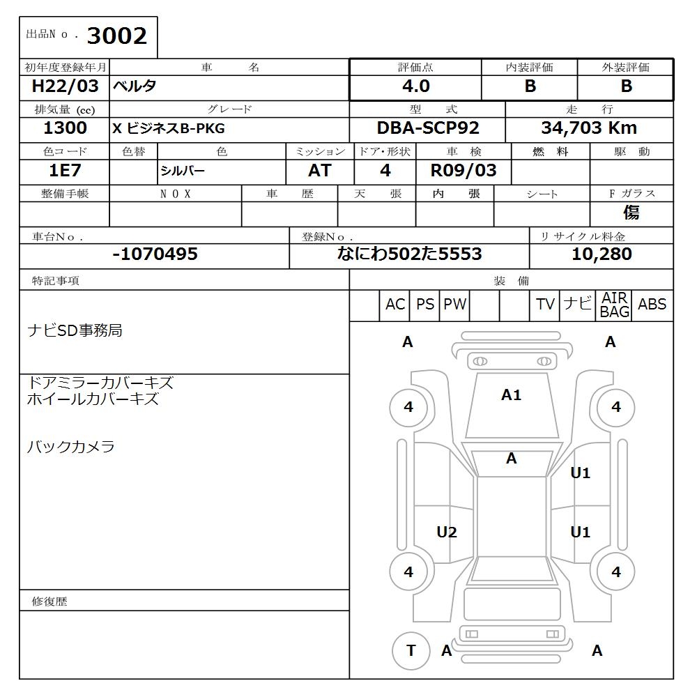 TOYOTA BELTA X BUSINESS B-PKG - лот 3002