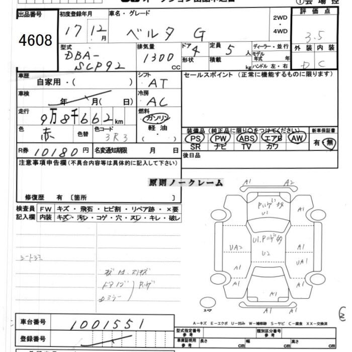 TOYOTA BELTA G - лот 4608