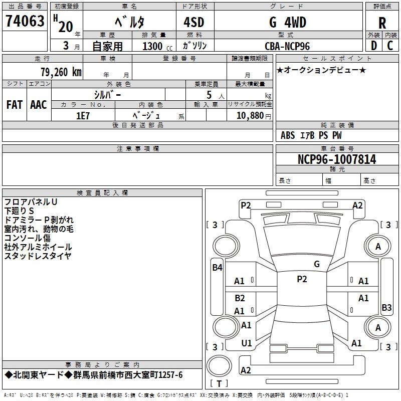 TOYOTA BELTA G 4WD - лот 74063