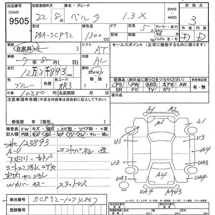 TOYOTA BELTA X - лот 9505