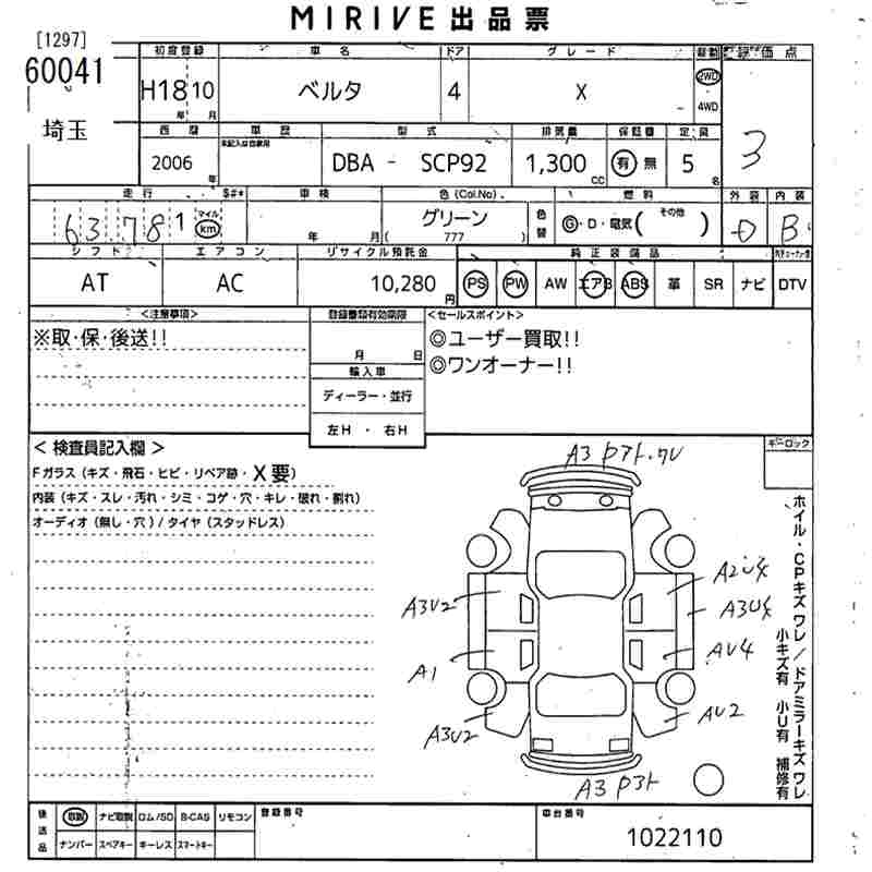 TOYOTA BELTA X - лот 60041