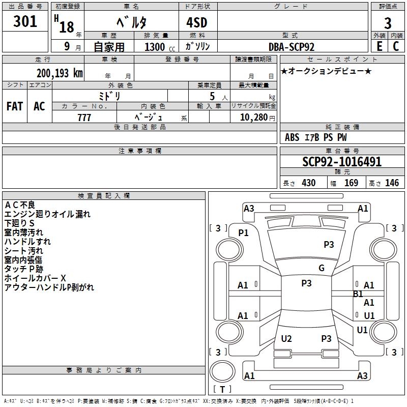 TOYOTA BELTA - лот 301