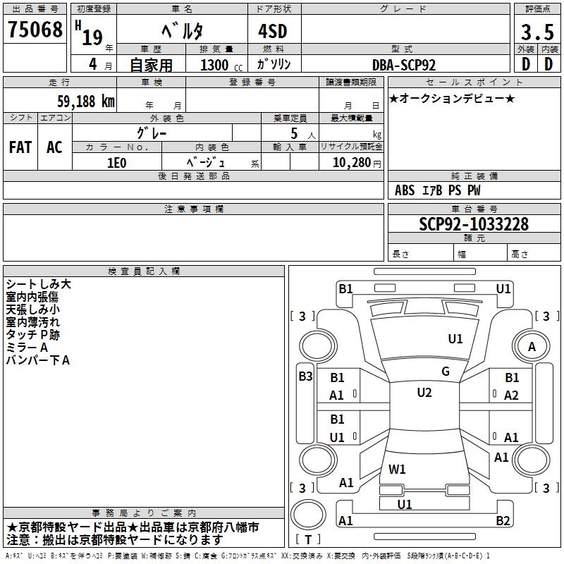 TOYOTA BELTA - лот 75068