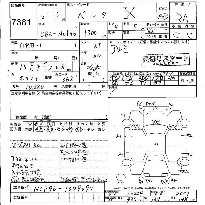 TOYOTA BELTA - лот 7381