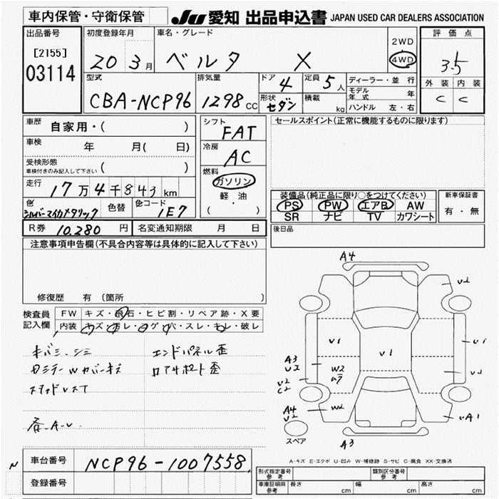 TOYOTA BELTA - лот 3114