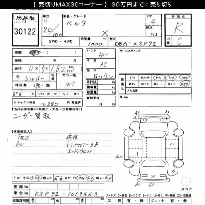 TOYOTA BELTA - лот 30122