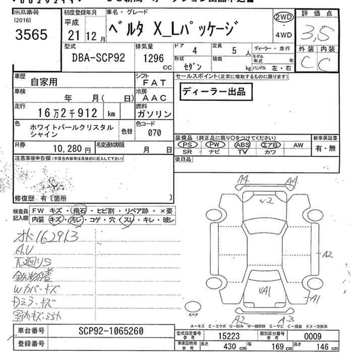 TOYOTA BELTA X L PACKAGE - лот 3565