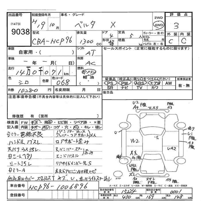 TOYOTA BELTA 4WD X - лот 9038