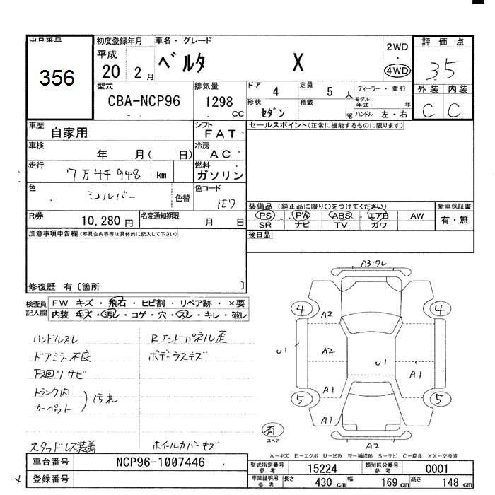 TOYOTA BELTA 4WD X - лот 356