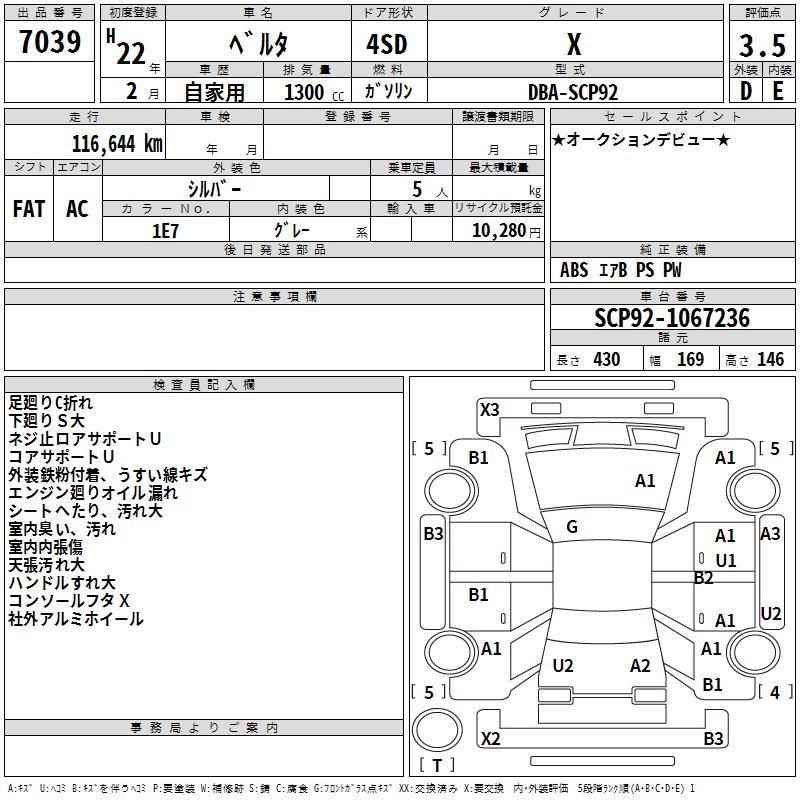 TOYOTA BELTA X - лот 7039