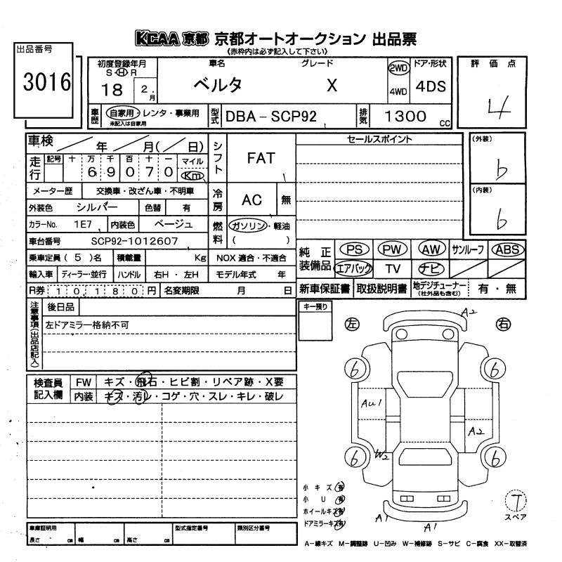 TOYOTA BELTA X - лот 3016