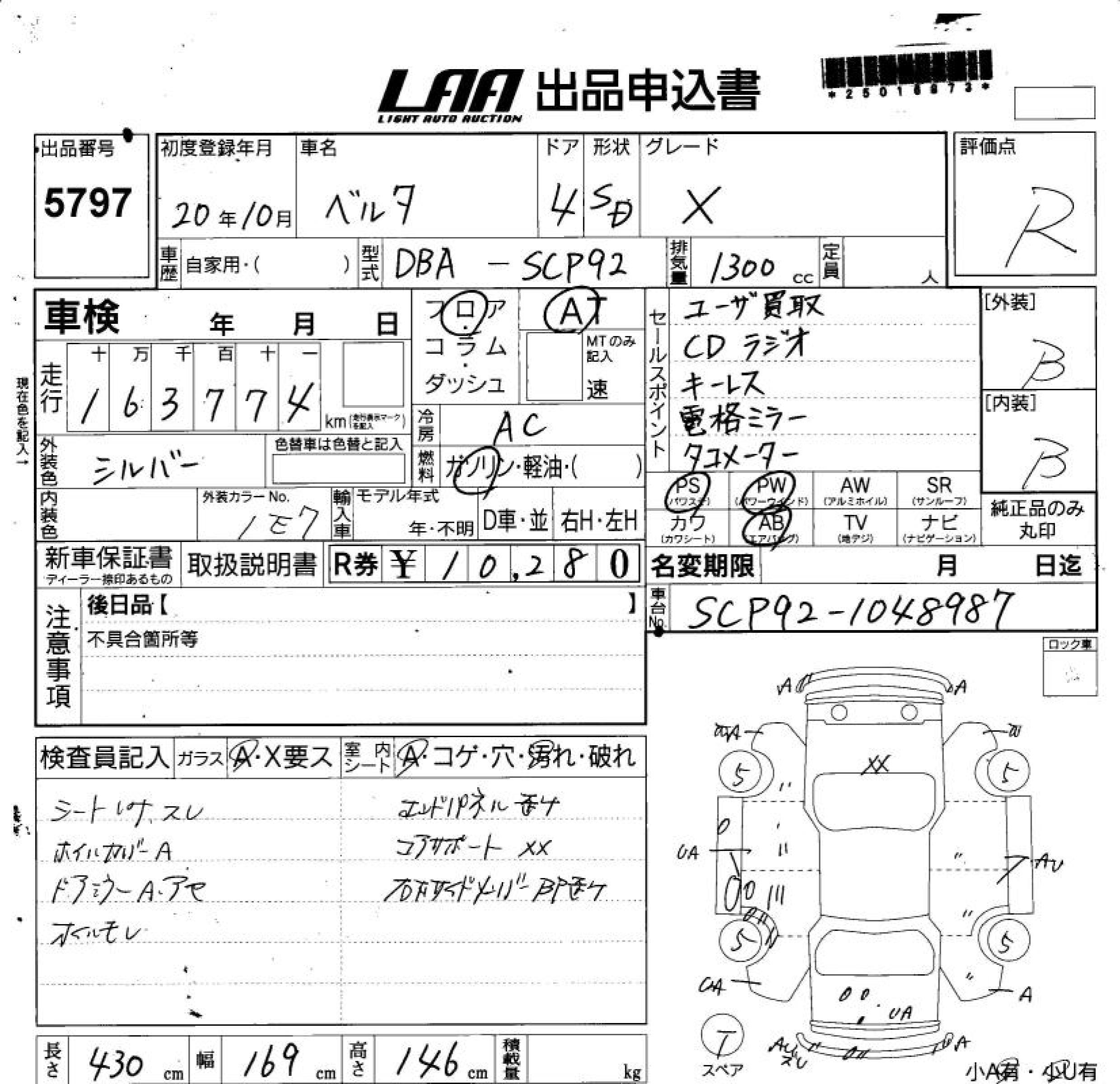 TOYOTA BELTA X - лот 5797