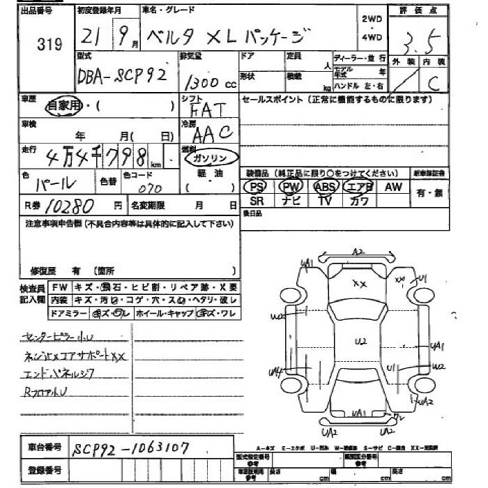 TOYOTA BELTA XL PG - лот 319