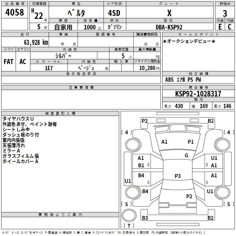 TOYOTA BELTA X - лот 4058