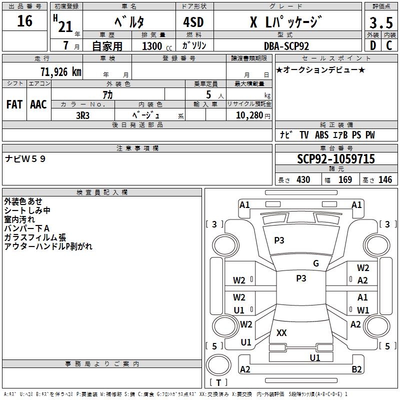TOYOTA BELTA X L PACKAGE - лот 16