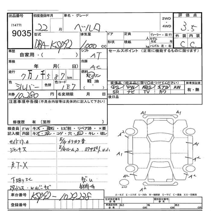 TOYOTA BELTA - лот 9035