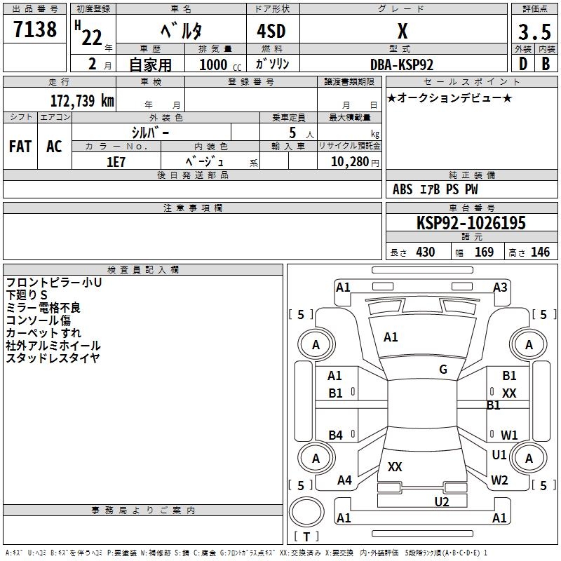 TOYOTA BELTA X - лот 7138