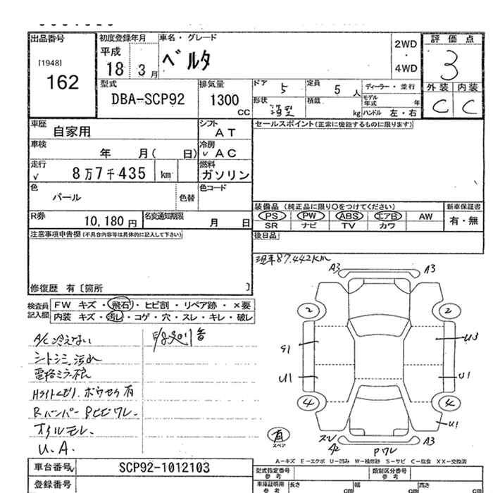 TOYOTA BELTA - лот 162
