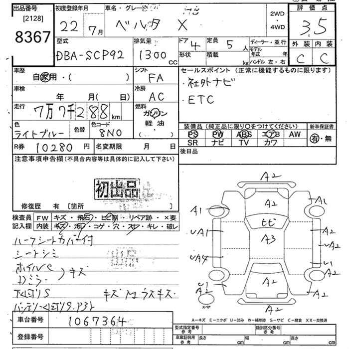 TOYOTA BELTA X - лот 8367