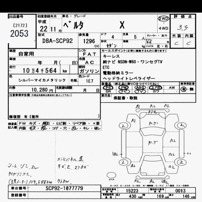 TOYOTA BELTA X - лот 2053