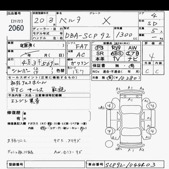TOYOTA BELTA X - лот 2060