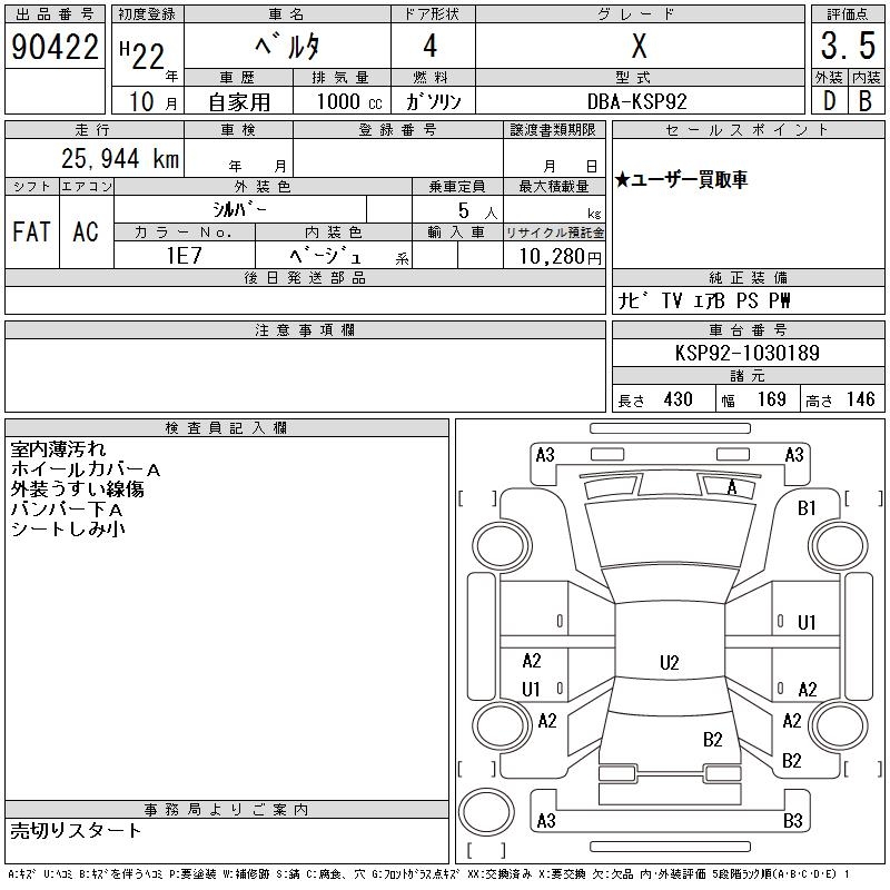 TOYOTA BELTA X - лот 90422