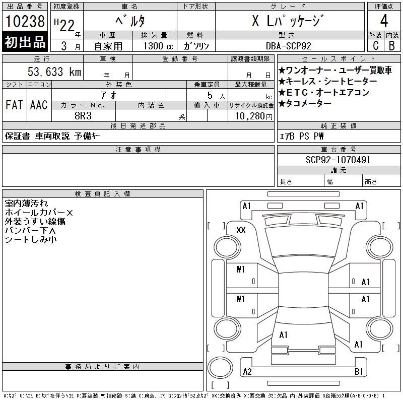 TOYOTA BELTA X L PACKAGE - лот 10238