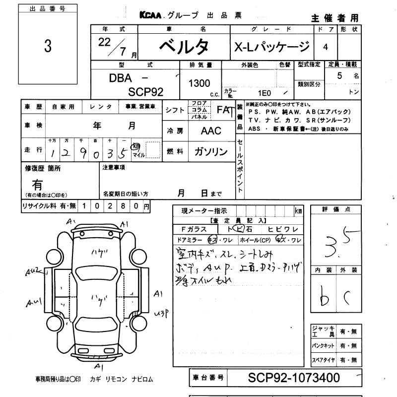 TOYOTA BELTA X L PACKAGE - лот 3