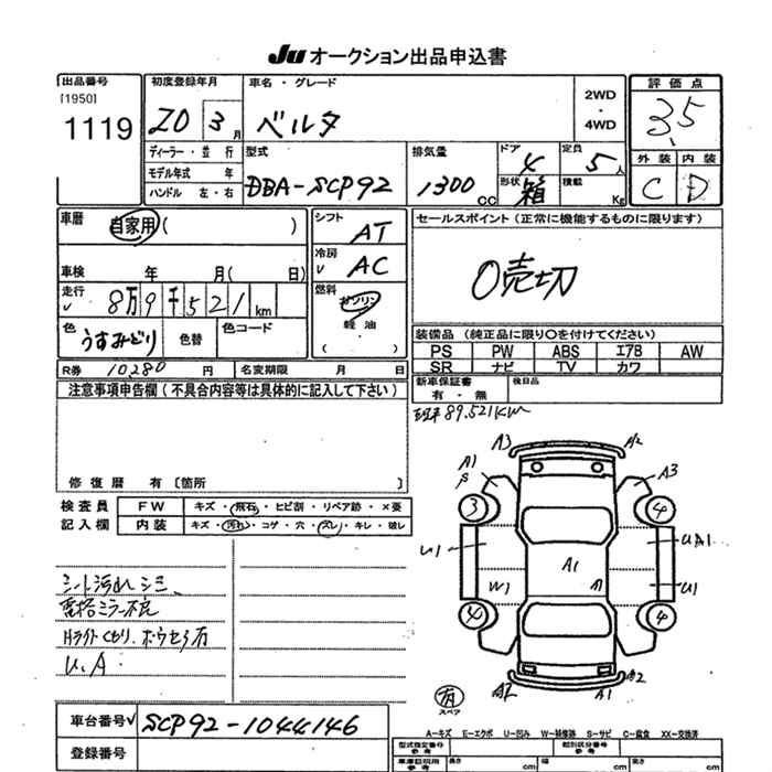 TOYOTA BELTA - лот 1119