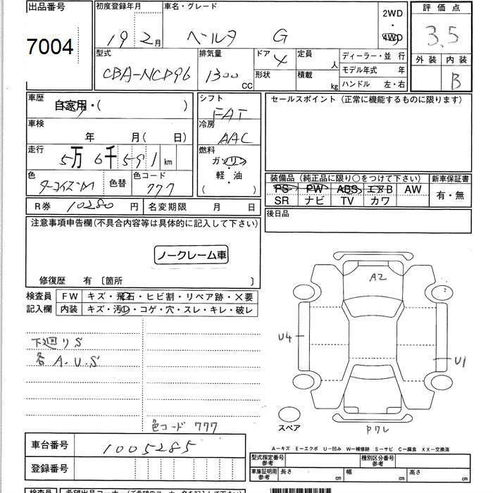 TOYOTA BELTA 4WD G - лот 7004