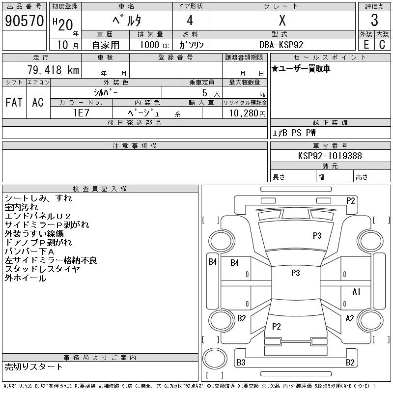 TOYOTA BELTA X - лот 90570