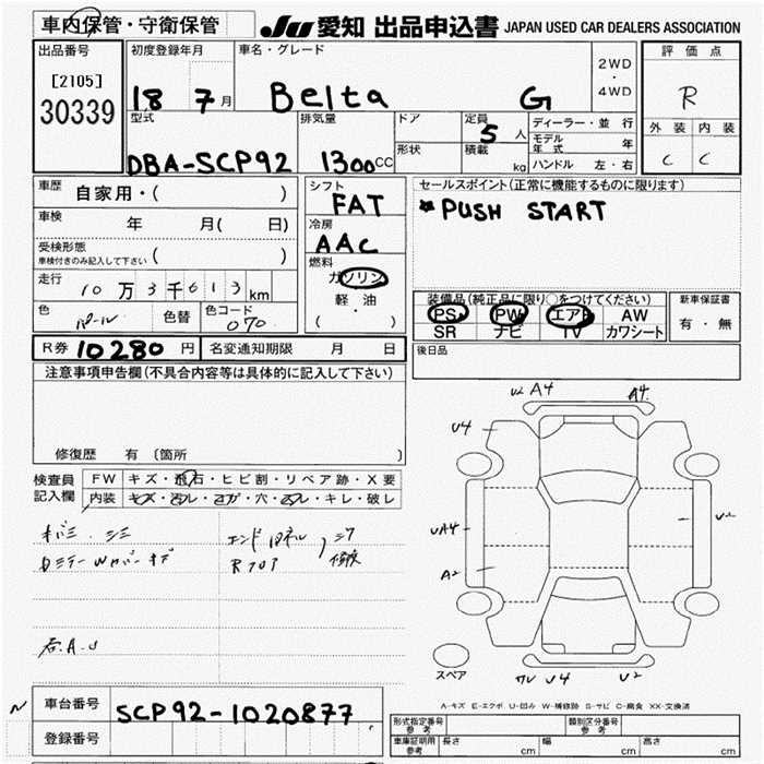 TOYOTA BELTA G - лот 30339