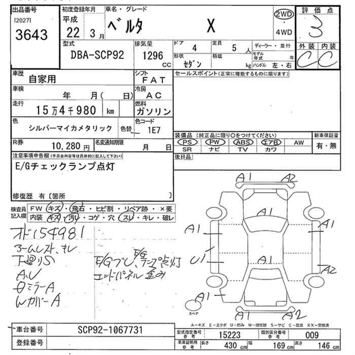 TOYOTA BELTA X - лот 3643