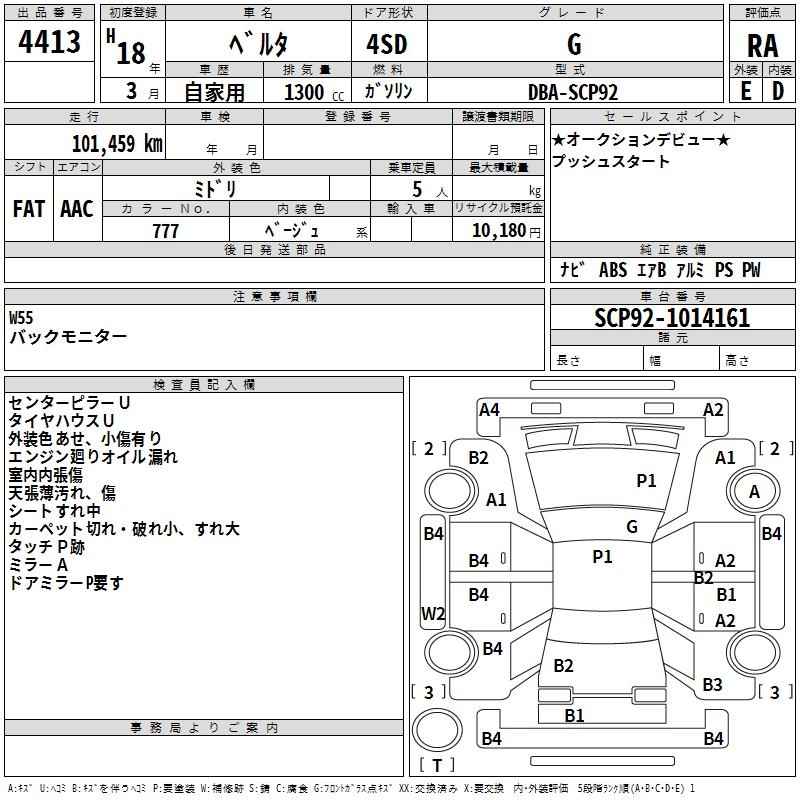 TOYOTA BELTA G - лот 4413