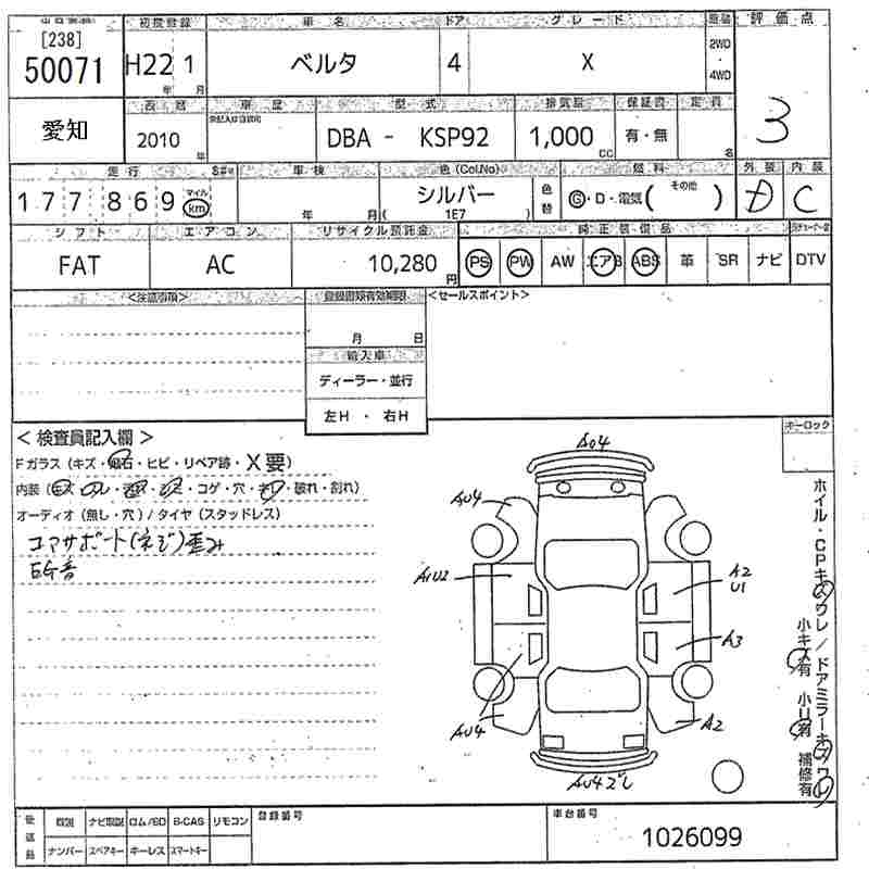 TOYOTA BELTA X - лот 50071