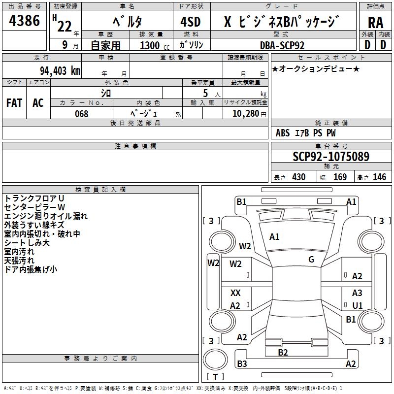 TOYOTA BELTA X BUSINESS B PACKAGE - лот 4386