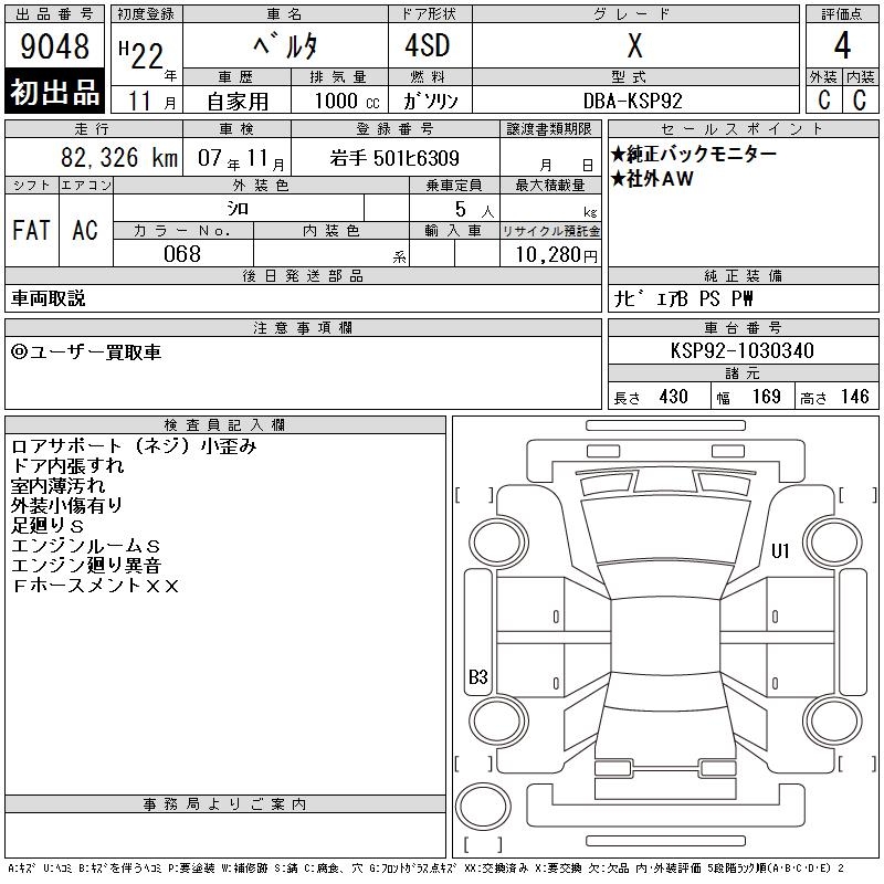 TOYOTA BELTA X - лот 9048