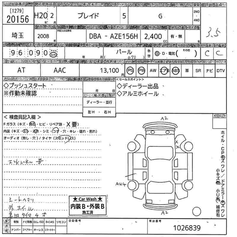 TOYOTA BLADE G - лот 20156