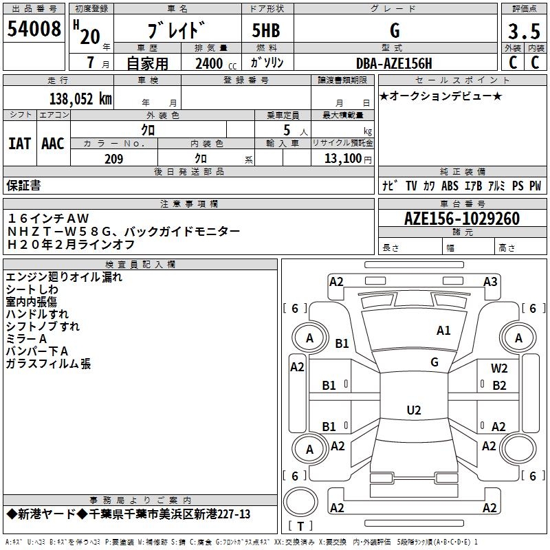 TOYOTA BLADE G - лот 54008