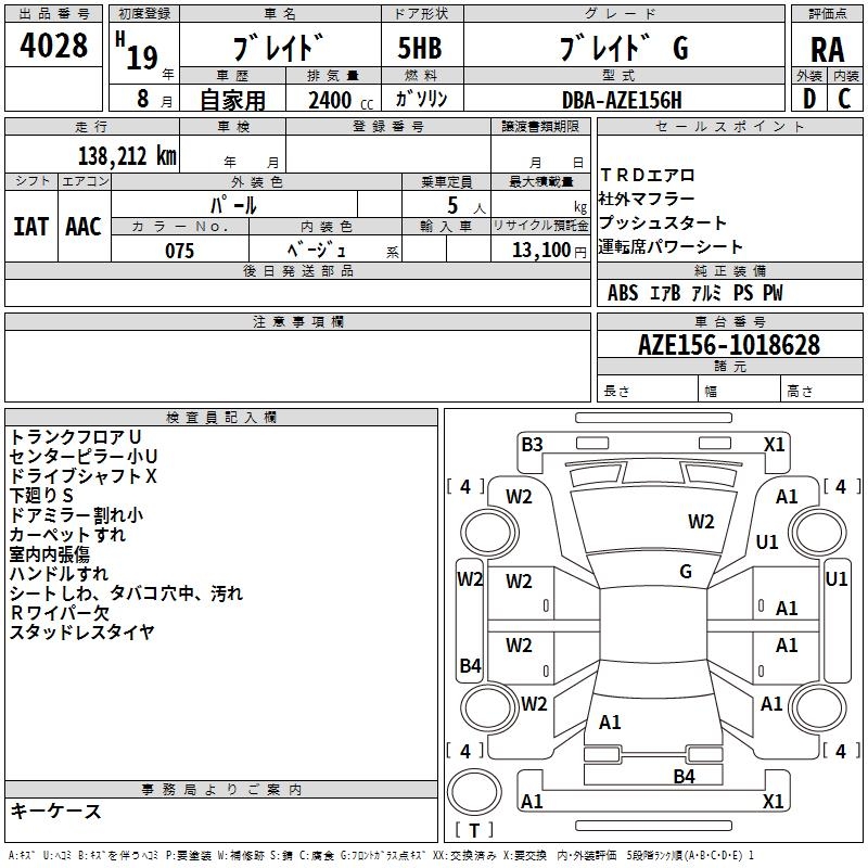 TOYOTA BLADE BLADE G - лот 4028